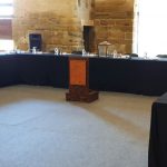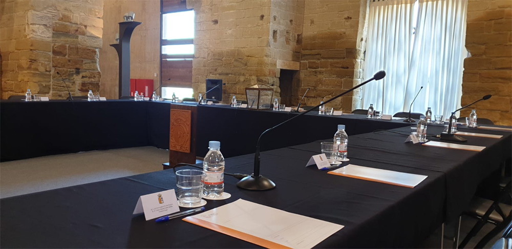Montaje de infraestructuras, mobiliario efímero y sonido para el Acto de Investidura del nuevo equipo de gobierno del M.I. Ayuntamiento de Fraga, celebrado el sábado 16 de Junio de 2019 en «Lo Castell».